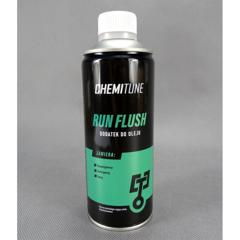 RUN FLUSH CHEMITUNE bezpiecznie eliminuje szlam, cząstki stałe, gumę i osady węglowe z elementów silnika, przywracając utraconą kompresję spowodowaną nagromadzeniem nagaru.