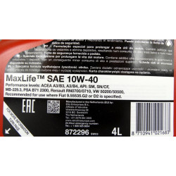 OLEJ SILNIKOWY VALVOLINE MAXLIFE 10W40 - 4L