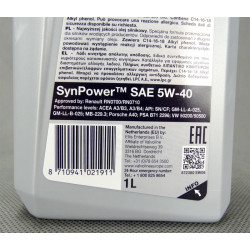 OLEJ SILNIKOWY VALVOLINE SYNPOWER 5W40 - 1L